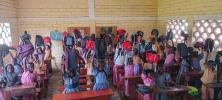 Anfang Juli dieses Jahres haben wir den Container für Dow-Bodié gepackt. Es wurden vor allem Material für Instandsetzungsarbeiten, z.B. ein termitensicheres Erdkabel für Strom, zwei neue Wasserbehälter aus Edelstahl für das Trinkwasser, kleine Photovoltaikanlagen - ähnlich unseren Balkonkraftwerken - für die Lehrerwohnungen geladen. Dabei waren auch jede Menge Schulmaterial, Bücher, Material für das Gesundheitszentrum und vieles mehr. Sehr sorgfältig musste vermieden werden, dass keine Medikamente, Spritzen, Infusionen und ähnliches dabei waren, denn das zu schicken, ist uns weiterhin untersagt. Die Fahrt des Containers dauerte wie gewohnt etwas 6 Wochen, doch danach kam eine echte Geduldsprobe auf uns alle zu. Die Ursachen der Verzögerungen lagen vor allem bei der Administration des Hafens und des Zolls. Außerdem ist der Containerhafen von Conakry völlig überfüllt. Mitte Oktober kam er endlich aus dem Hafen und wurde sofort Richtung Dow-Bodié transportiert. Das war eine große Herausforderung, denn die Straßen sind durch die sehr heftigen Regenfälle in völlig desolatem Zustand, sowohl die Asphaltstraßen als auch die Pisten. Wir sind sehr froh, dass es keinen Unfall gab und Menschen und Container nach zwei Tagen heil im Dorf ankamen. Die Ankunft war ein vielbeachtetes Ereignis und viele hofften, dass sich im Container die ersehnten Medikamente befinden würden und die deutschen Ärzte bald kommen werden. Diese Hoffnung teilen wir mit ihnen, wohl wissend, wie dringend nötig die Medikamentenversorgung ist. Die intensive Arbeit der Lehrer zeigte auch im vergangenen Schuljahr ihre Früchte: von 43 SchülerInnen der 6. Klassen haben 33 die Abschlussprüfung geschafft, die Hälfte davon sind Mädchen. Alle gehen jetzt auf das weiterführende Collège. Insgesamt besuchen zurzeit ca. 261 Kinder die Schule in Dow-Bodié.